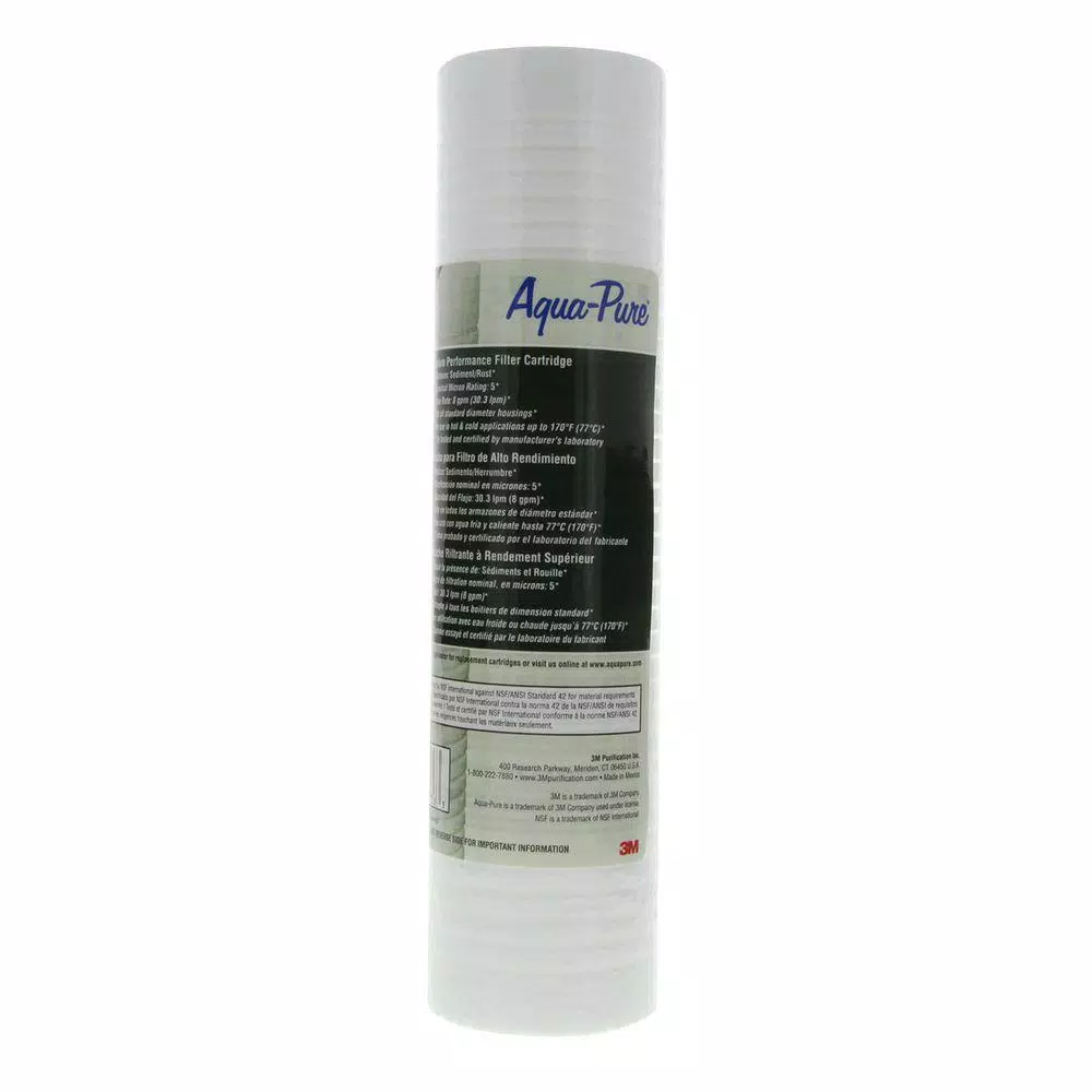 Aqua-Pure Whole House Replacement Filter Cartridge AP110 filters sediment in water for drinking, laundry, bathing, and other household uses, reducing particles as fine as 5 micron in size. The cartridgeβs multi-filter, ridged design maximizes dirt-holding capacity and overall filter life. Aqua-Pure water filters and cartridges are products of 3M Purification Inc., formerly CUNO Incorporated. Cartridge Specifications Aqua-Pure Whole House Replacement Filter Cartridge AP110 is manufactured from FDA CFR-21 compliant materials. It has a maximum operating temperature of 170Β°F (76.7Β°C) and provides a flow rate of 8.00 GPM (30.3 l per minute). The Aqua-Pure AP110 Whole House Replacement Filter Cartridge can be used with the following cold water systems: AP11T, AP101T, AP1610SS, SST1HA, SS4 EPE-316L, SS8 EPE-316L, SS12 EPE-316L, SS20 EPE-316L, SS24 EPE-316L and SS36 EPE-316L. Reduces Sediment to Help Provide Cleaner, Clearer Water Almost every home can benefit from a filtration system that filters water as it first enters the home. Called point-of-entry systems, or whole-house water filtration systems, they filter particulate, improve taste, and reduce odor. In addition to delivering more appealing drinking water, reduction of particulate helps preserve plumbing and fixtures. A cartridge system is typically more compact and requires a lower initial investment, but may have higher long-term operating costs due to the replacement cartridges.
