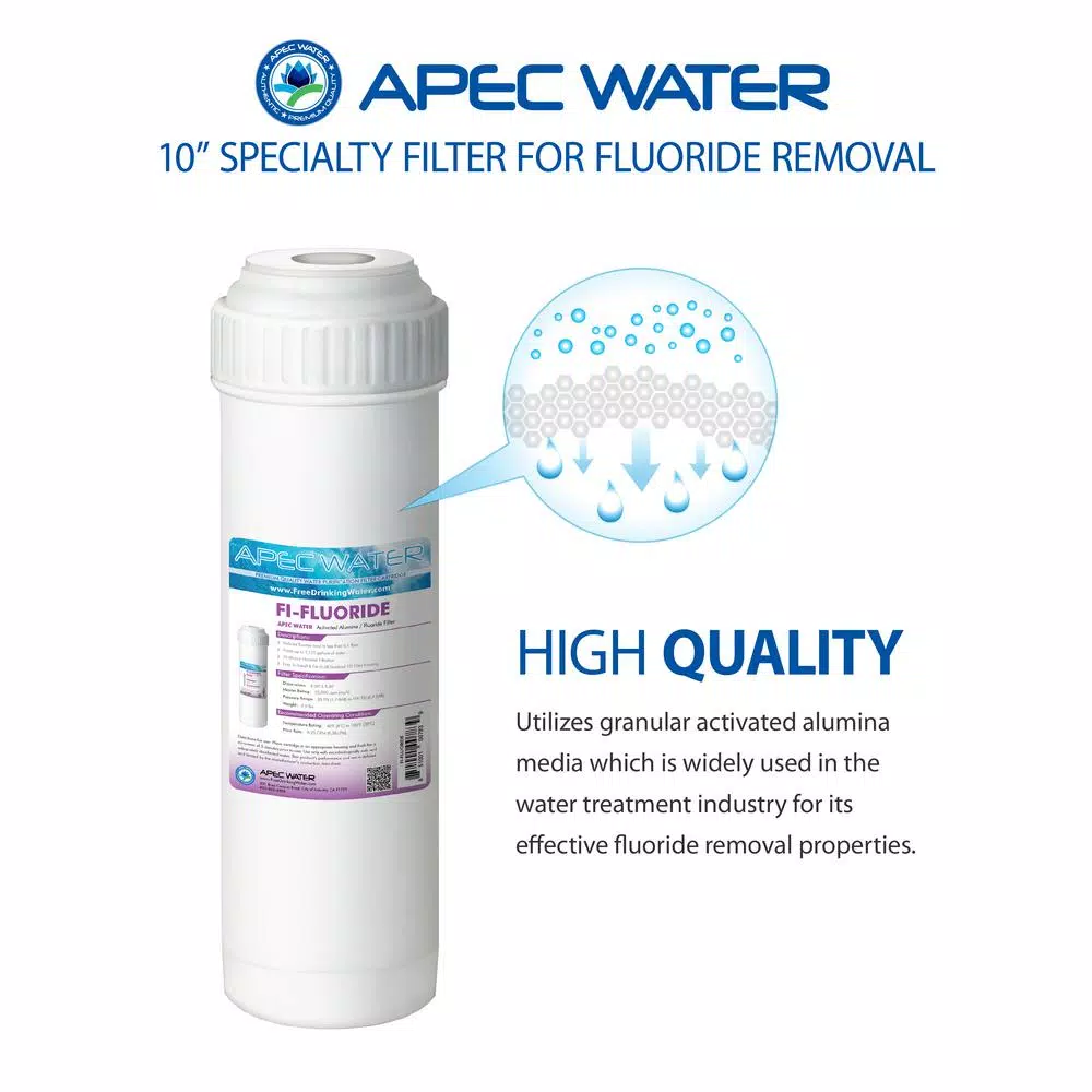 Drinking water with fluoride levels above 2 ppm can lead to mottling of the teeth enamel or discoloration of the permanent teeth. And, too much fluoride in your drinking water may increase the potential for bones fractures. This Fi-Fluoride utilizes granular activated alumina media that can easily reduce fluoride levels from 0.5 ppm to less than 0.1 ppm. The activated alumina is a synthetic aluminum oxide that removes fluoride more selectively. It is widely used in the water treatment industry for its effective fluoride removal properties.