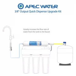 Quick Dispense Upgrade for your RO system will greatly increase the flow rate of water from the tank to the faucet. The higher water flow will allow you to fill up a glass or pitcher of water much faster. Reduces wait time when drawing and filling large pots of water for making soups or beverages.