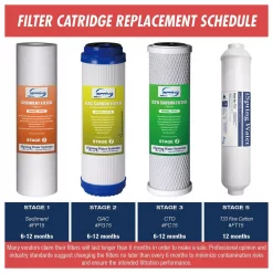 - 1st stage polypropylene sediment filter to remove dust, particles, and rust