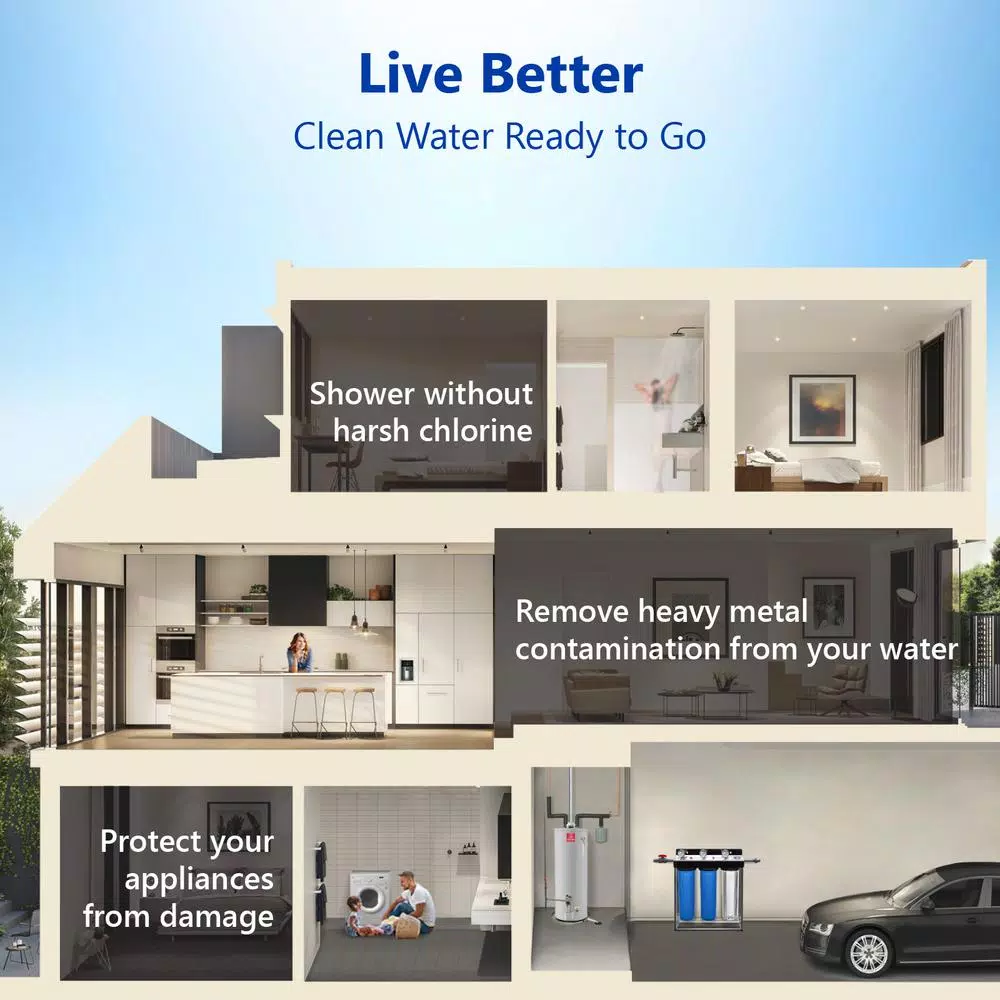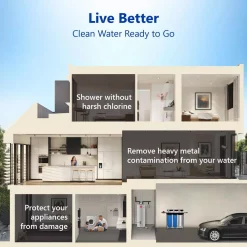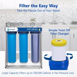 - Whole House Water Filter System: Reduce harmful contaminants from your entire home’s water with Express Water’s 3 Stage Water Filtration System and easy to replace Water Filter Replacement Cartridges. The highest quality, long-lasting materials give you up to 100,000 gallons of water filtration