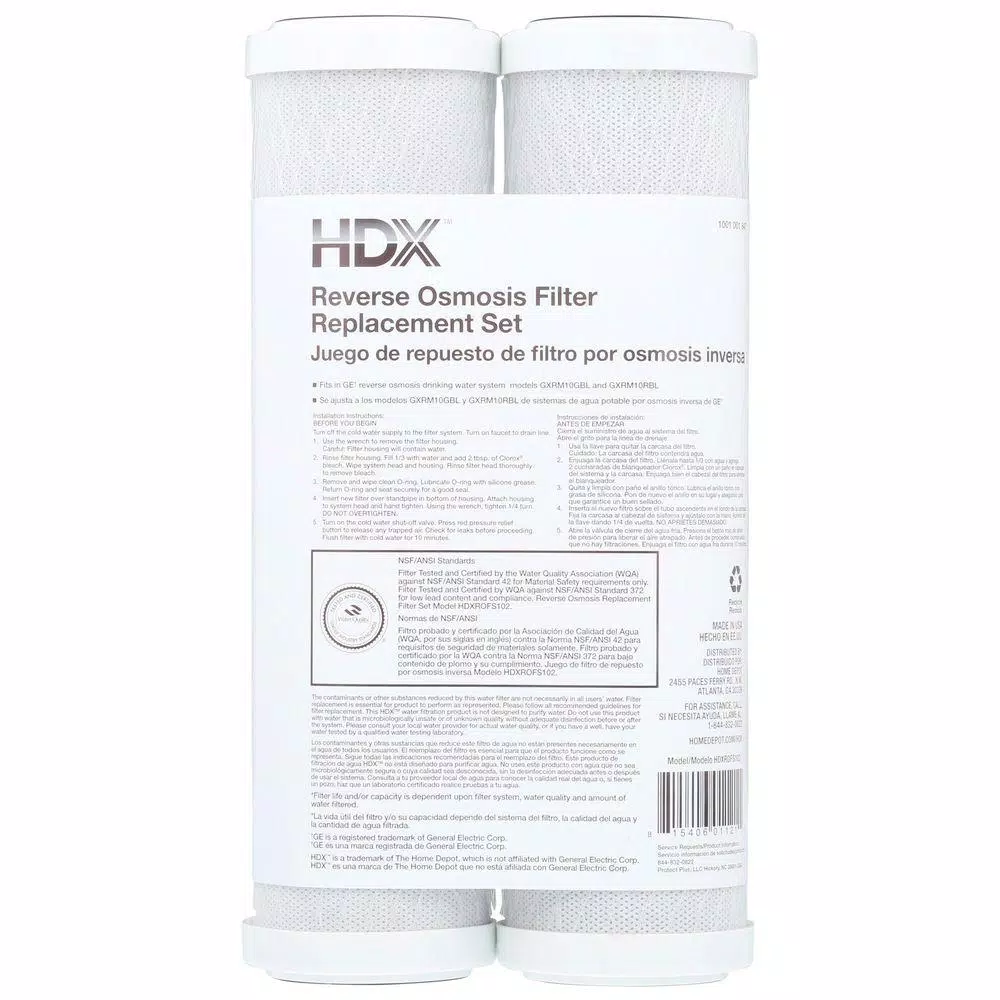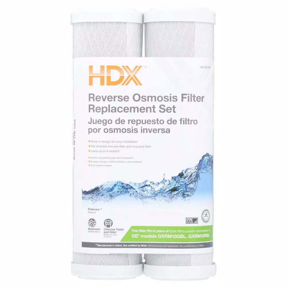 The HDX Reverse Osmosis Drop-In Filter Set includes one pre-filter and one post-filter. Produces healthy better tasting water. For use in GE Reverse Osmosis Drinking Water System GXRM10GBL.