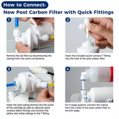 4x High-Capacity 5 Micron 10″ Polypropylene Sediment Filters (FP15) — Removes dust, particles, and rust. Replace about every 6 months. Tested by independent third-party to meet NSF/ANSI Standard. 4x Granular Activated Carbon (GAC) 5 Micron 10″ Filters (FG15) — Gets rid of unpleasant chlorine, tastes and odors, cloudiness and colors. Replace about every 6 months. Tested by independent third-party to meet NSF/ANSI Standard. 4x Carbon Block (CTO) 5 Micron 10″ Filters (FC15) — Removes any residual chlorine, tastes & odors, compounding the pre-filters’ efficiency and extending the RO membrane’s life. Replace about every 6 months. Tested by independent third-party to meet NSF/ANSI Standard. 1x High Rejection .0001 Micron TFC Reverse Osmosis Membrane (MC1) — The heart of the RO system. Produces drinking water at a rate of 100 gallons per day. Replace about every 2-3 years. Tested by independent third-party to meet NSF/ANSI Standard. 2x Total Polishing Inline Post Carbon Filters (FT15) — Removes any possible residual tastes and odors from the tank. Replace about every 12 months. Tested by independent third-party to meet NSF/ANSI Standard.