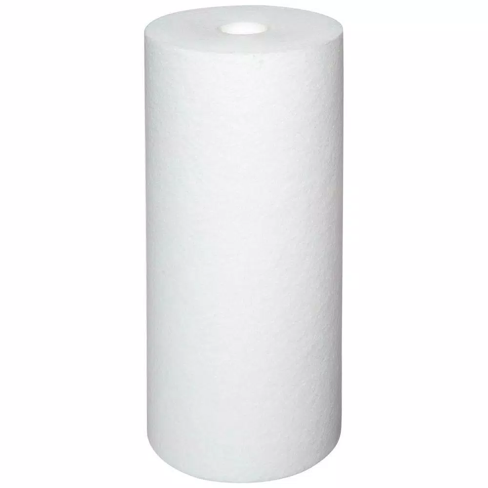 This Pentek DGD-5005 spun polypropylene filter cartridge reduces sand, silt, scale, and rust particles in residential, commercial, and municipal drinking water. It has 2 separate gradient layers for higher particle reduction efficiency and dirt-loading capacity than standard spun or string-wound cartridges. The nominal filtration rating of the pre-filter layer is 50 microns, and the rating of the post-filter layer is 5 microns. The filter is made of spun polypropylene fibers for resistance to chemicals and bacteria. It has an initial pressure drop of less than 1 psi at a flow rate of 10 GPM, and operates over a temperature range of 40 to 145°F (4.4 to 62.8°C). This spun polypropylene filter cartridge meets National Sanitation Foundation/American National Standards Institute (NSF/ANSI) standard 42 for quality assurance, and is used for treatment of residential, commercial, and municipal drinking water.