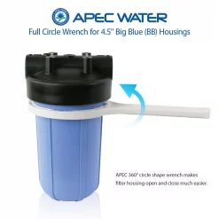 APEC 360° circle shape filter housing wrench makes filter housing change much easier. It is an essential and durable accessory for whole house water filtration system maintenance. This filter wrench fits most of the 4.5 in. Dia industry standard size filter housing.