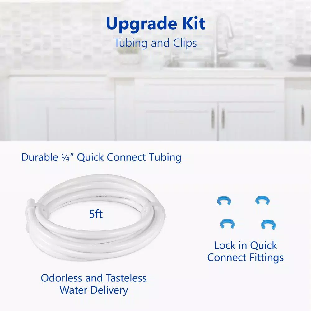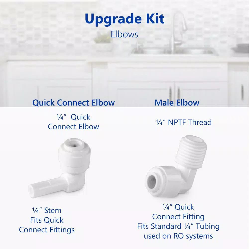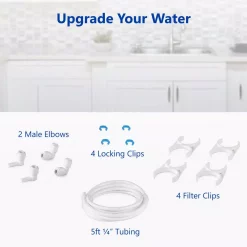 Upgrade your filtration and your home with an easy setup Filter Upgrade Kit. This kit is compatible with all standard reverse osmosis and undersink filtration systems. The kit uses quick connect fittings and mounts to the filter(s) on top of your system. With a simple, durable, food grade design keeping your water tasting great and your home safe is simple. The entire kit is made of temperature resistant polypropylene so it doesn’t warp or affect the taste of your water. The BPA free construction ensures that your system is kept completely pure. You may need additional fittings installation if you are installing a non-standard filter. The package includes 2 male elbows, 2 stem elbows, 5 ft. of white tubing, 4 lock clips, and 4 filter clips. Get the most out of your filtration. Choose the reliable easy to upgrade your water: The Express Water Filter Upgrade Kit PRTUPKIT14 is the best in water purification.
