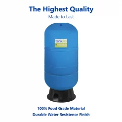 Heavy Duty Construction -All Materials in the expansion tank are 100% food safe and FDA grade to make sure your water is tasteless, odorless, and contaminant free -The inside of the RO water tank is completely smooth to prevent damage to the bladder -The water storage tank is coated with a two-part epoxy primer and finished with polyurethane to resist damage even in the outdoors -The adjustable bladder within the water tank is made of high grade Chlorobutyl rubber and is completely airtight -The inside liner of the water filter tank is made of Virgin Polypropylene, the most durable liner even on a molecular level All the Water You Need A 40-gallon water pressure tank can hold 22 gallons of water. All tanks have a certain amount of their capacity used by the air bladder, which is necessary for drawing water from the water reservoir tank. Be Confident All components are high quality food-grade -Each RO tank passes extensive durability testing -A sealed brass air nozzle and o-ring sealed air valve caps means consistent air pressure -This reverse osmosis tank is designed to last over five years