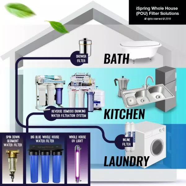 - Smart flow sensor switch powers on/off UV light automatically by water flow