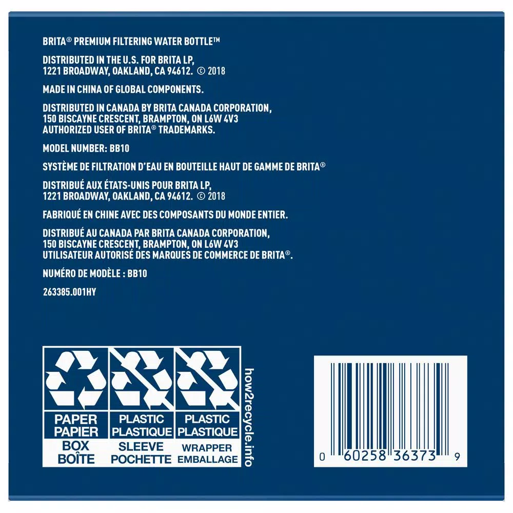 Enjoy great-tasting tap water anywhere with the Brita 26 Ounce Premium Filtering Water Bottle. The durable, BPA-free, plastic bottle includes 1 replaceable filter, which reduces Chlorine (taste & odor) as you drink. Featuring an enclosed, easy-sip straw, built-in carrying loop for grab-and-go portability, and one-handed push button lid, this bottle is designed for effortless convenience. This water bottle is car cup holder friendly and has a leak-proof design to help you avoid surprise drips and spills. Enjoy hassle-free hydration anywhere: at home, the office, a sporting event, or a trip abroad. One bottle filter can replace up to 300 standard 16.9 ounce single-use plastic bottles, so you can stay hydrated, save money, and reduce plastic waste. Brita filtering bottles are easy to clean and dishwasher safe. For best results, replace the filter every 40 gallons or about every two months. With Brita, take filtered water anywhere you go!