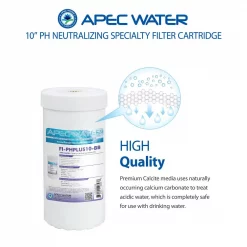 The FI-PHPLUS10-BB filter cartridges utilize calcite media to neutralize low pH conditions and to re-mineralize acidic water that is low in minerals. Calcite is a naturally occurring calcium carbonate mineral which is often used to treat acidic water conditions and is completely safe for use with drinking water.These filters will make water less aggressive by increasing the alkalinity of soft water while improving the overall chemical balance and taste. The resulting treated water will also have higher mineral content which will protect your water appliances and pipes from the damaging effects of corrosion. With this filter, you will be able to enjoy more naturally balanced and alkaline water.The FI-PHPLUS10-BB filter can treat up to 12,000 gallons and will fit in our 10″ standard Big Blue housings.