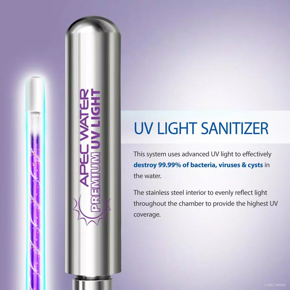 - Continuous UV sanitation destroys up to 99.99% of bacteria, viruses and cysts, and kills parasites in un-chlorinated water for extra protection against all microbial pathogens
