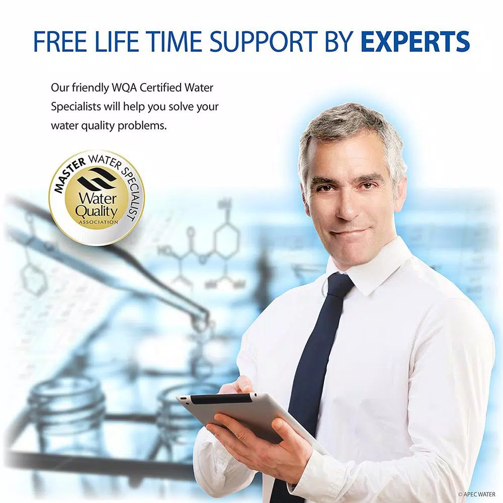 Enjoy fresh, great tasting ph+ calcium mineral water right at home that is perfect for drinking, cooking and making delicious coffee, tea and ice. ROES-PH75 is guaranteed to remove up to 99% of harmful water contaminants such as chlorine, taste, odor, VOCs, as well as toxic fluoride, arsenic, lead, nitrates, heavy metals and much more. Save money, time and hassle from buying costly bottled water and live healthier with alkalized, calcium mineral drinking water. ROES-PH75’s calcium mineral cartridge adds only 100% US-made high-purity calcium carbonate to effectively raise pH in the water for those who desire alkaline water. Other re-mineralization RO systems claim to add various beneficial minerals back into the water; however, their mineral formulations are often from unknown and uncertified sources that can lead to potential health concern. Designed, engineered and assembled in USA, the 6-stage ROES-PH75 is put through a rigorous quality control process and offers the highest contaminant rejection rate. The high output 75 GPD membrane provides fast production rate for large family who desires quality mineral drinking water. Based in the U.S. with 2 decades of experience in RO design and production, APEC Water is committed in producing top performing systems that provides trouble-free, high quality drinking water for many years to come.