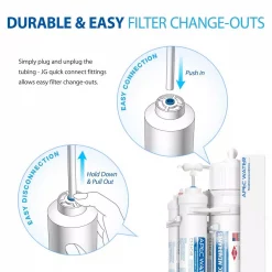 - 2nd stage: quick-connect coconut shell activated carbon filter gets rid of unpleasant chlorine, tastes, odors, cloudiness and colors, as well as removes VOCs and other common chemicals from the water