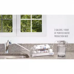 This light and compact RO-CTOP system was specifically engineered to offer exceptional portability, convenience and ease of use. It hooks up to most existing standard faucet in seconds – no installation required. If you want an unlimited amount of bottled-water-quality water that you can take with you anywhere, this is your dream system. Perfect for apartments, condominiums, motor homes, retirement homes and students. Provides safe drinking water with capacity up to 90 Gal. per day (at 60 psi water pressure) to fill any water storage container you provide. Enjoy unlimited ultra-fresh, clean, great tasting water right at home for the best quality water for cooking and making delicious coffee, tea and ice. Save money, time, and hassle of buying costly, heavy bottled water and live healthier with ultra-safe water that is 99% contaminant free. System is designed to remove contaminants such as chlorine, taste, odor, toxic fluoride, arsenic, lead, and chromium.