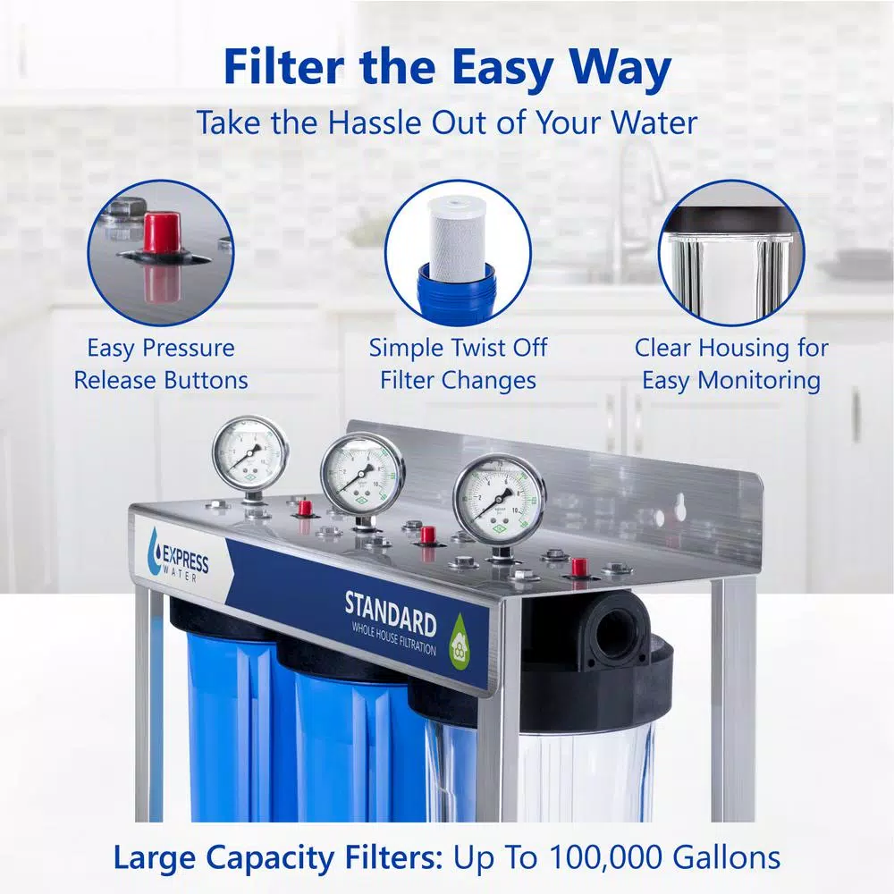 - Durable Whole House Water Filter: Express Water Whole Home Water Filtration Systems are constructed with standing stainless-steel frames for long term durability and quality.