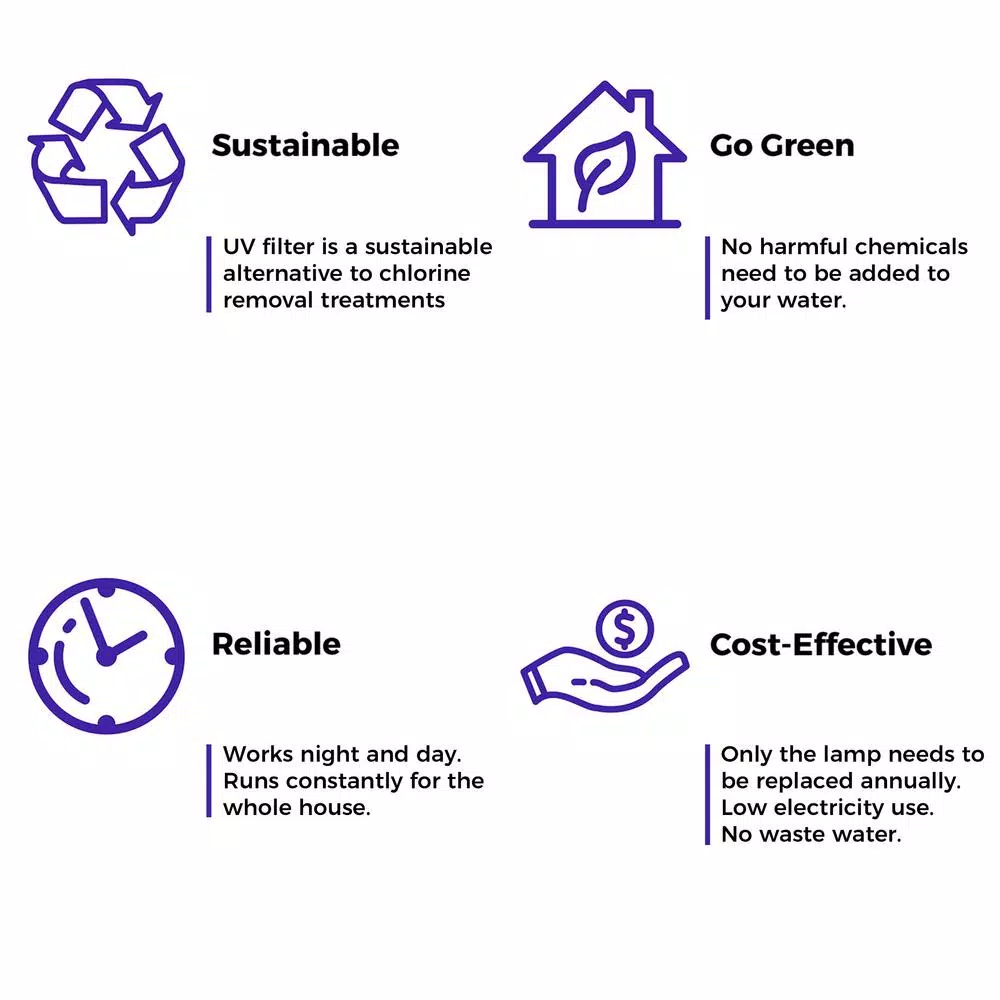 UV has proven to be a quick, reliable, and cost-effective method of water treatment for both point-of-use (POU) and point-of-entry (POE) systems. Being a chemical-free, environmentally friendly, and affordable UV water filter system, iSpring UVF55 UV water filter, for which this UVB55 UV lamp works, can protect the whole house against contaminants commonly found in private wells. For houses that get water from municipal water suppliers, this UV light water filter provides a great solution against chlorine-resistant substances so that you know you and your loved ones get clean water for drinking, washing, showers and more. Build your trust in water for your entire household by removing risks unable to be addressed by your municipal treatment plant or those born with well water or other natural water sources.