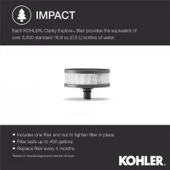 - Each KOHLER clarity explore filter provides the equivalent of over 3,000 standard 16.9 oz. (0.5 l) bottles of water